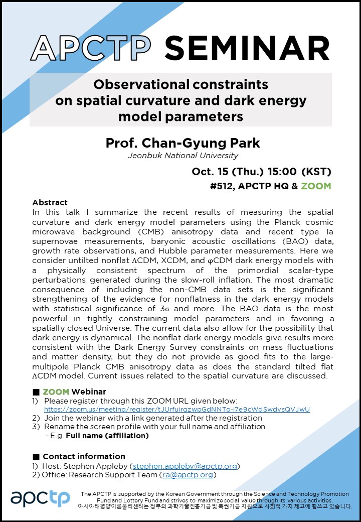Place | #512, APCTP HQ & Online via ZOOM | ||||||