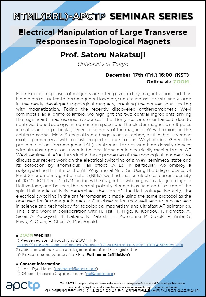Title | Electrical Manipulation of Large Transverse Responses in Topological Magnets | ||||||
