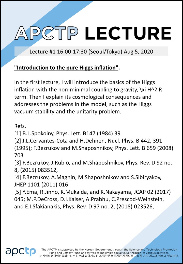 Title | [JRG] Lecture Series on Recent Progress in Higgs Inflation I: Introduction to the pure Higgs Inflation | ||||||