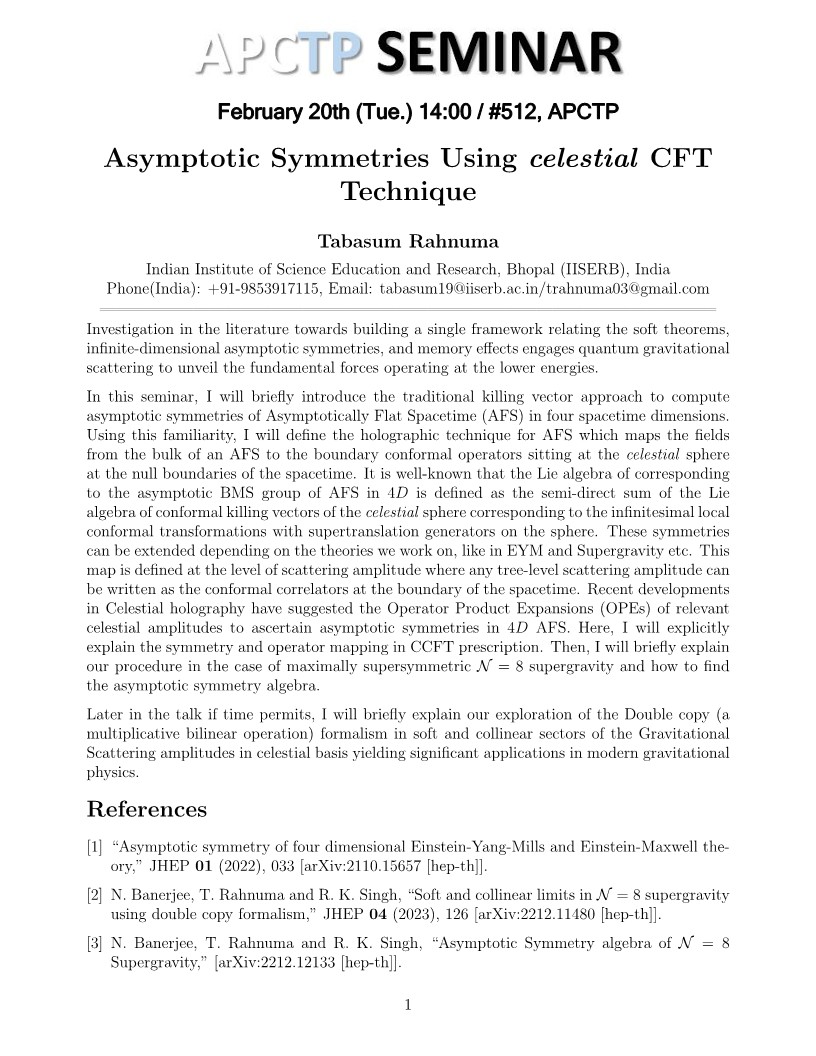 | Title | Asymptotic Symmetries Using celestial CFT Technique | ||||||