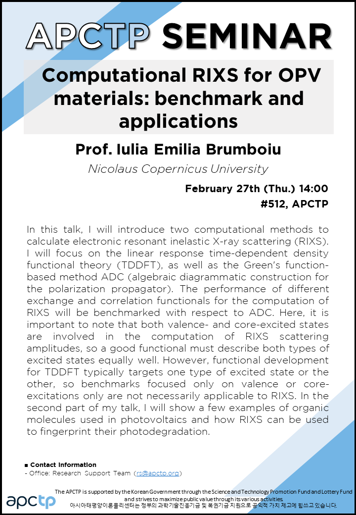 | Title | Computational RIXS for OPV materials: benchmark and applications | ||||||