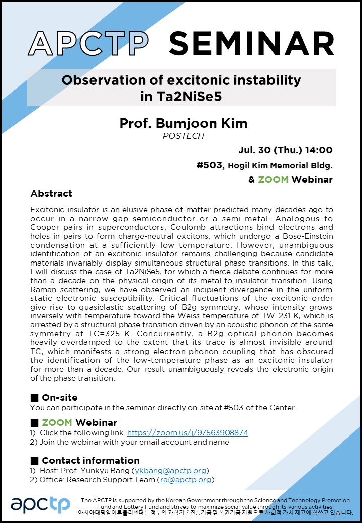 | Place | #503, APCTP HQ, Online via ZOOM | ||||||