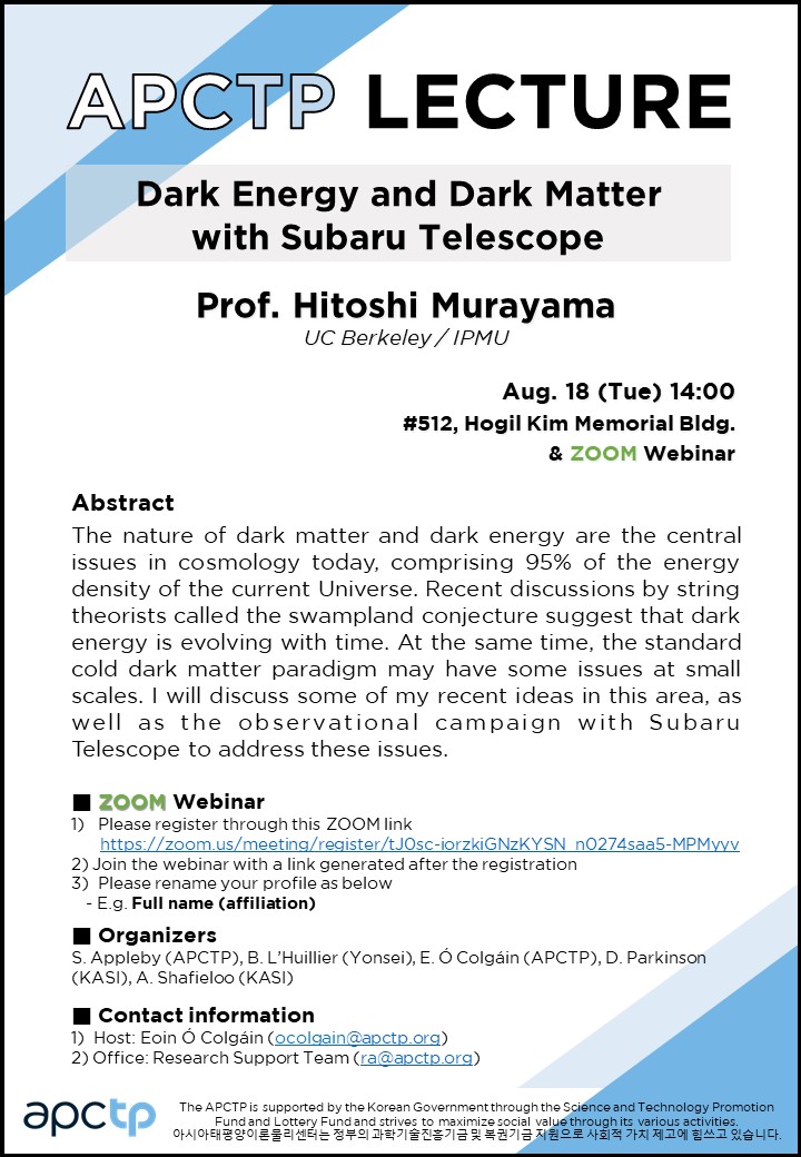 | Place | #512, APCTP HQ & Online via ZOOM | ||||||