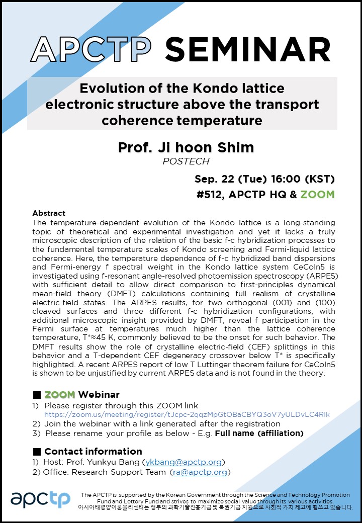 | Place | #512, APCTP HQ & Online via ZOOM | ||||||