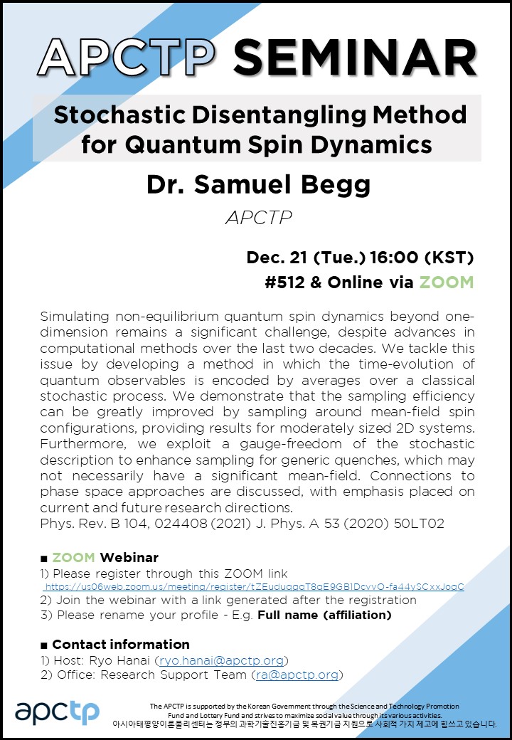 | Place | #512, APCTP HQ & Online via ZOOM | ||||||