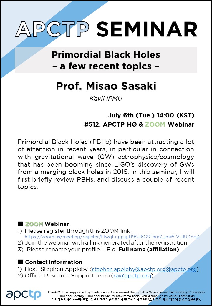 | Place | #512, APCTP HQ & Online via ZOOM | ||||||
