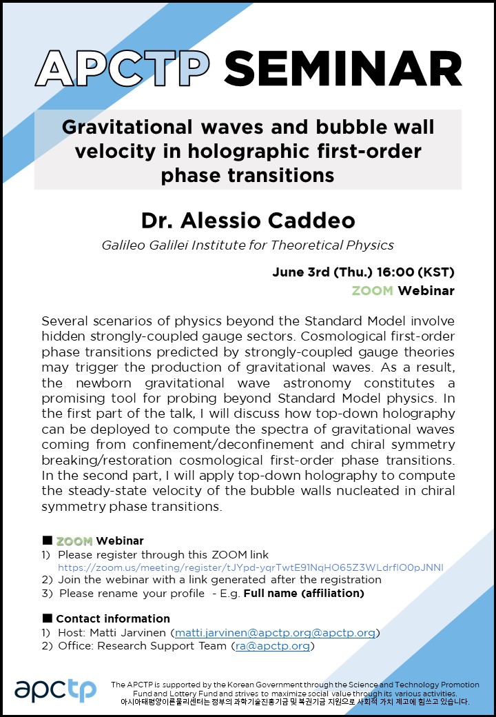 | Title | [JRG] Gravitational waves and bubble wall velocity in holographic first-order phase transitions | ||||||