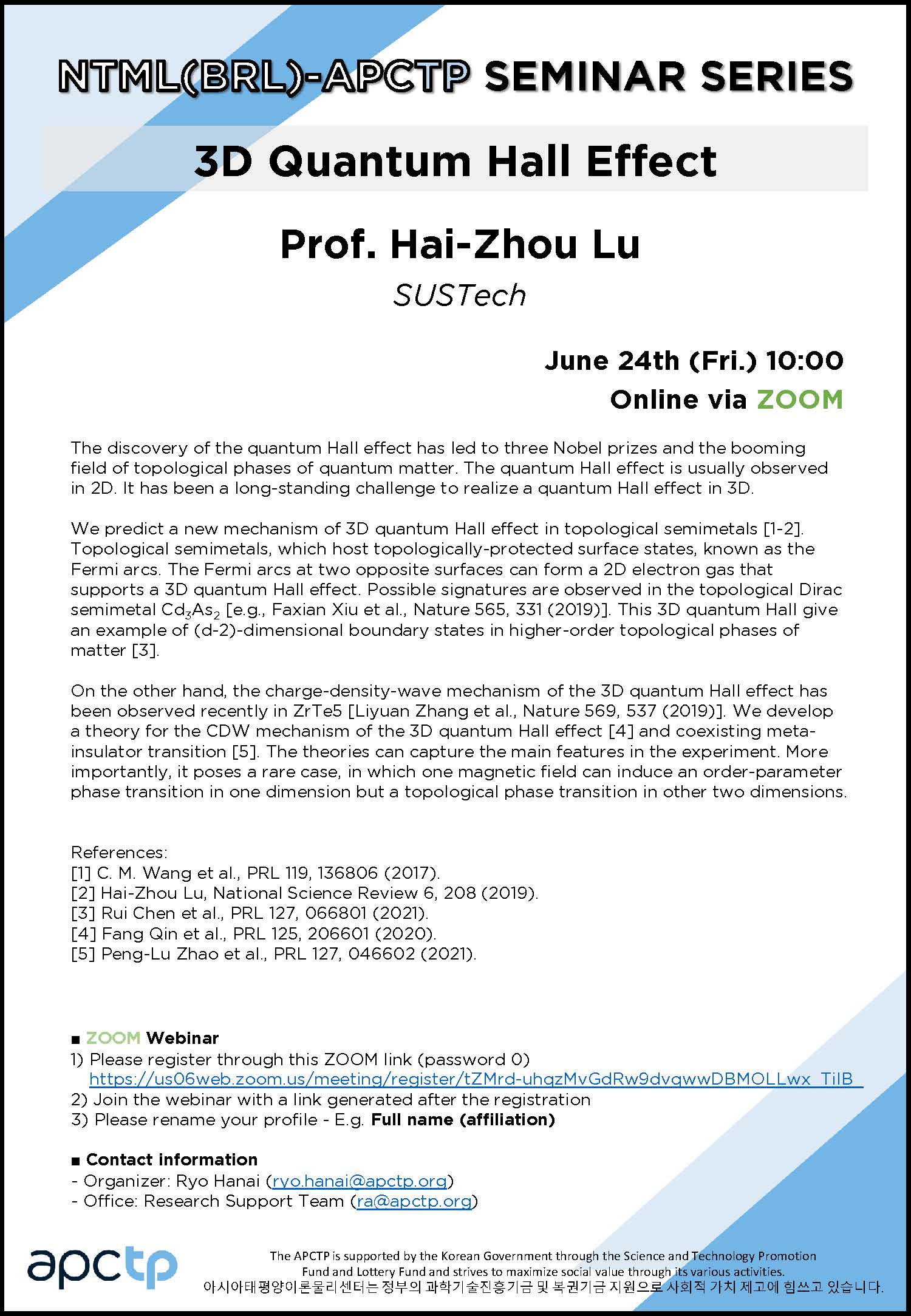 | Title | [JRG] NTML(BRL)-APCTP Seminar Series on Topological Matter Out of Equilibrium: 3D Quantum Hall Effect | ||||||