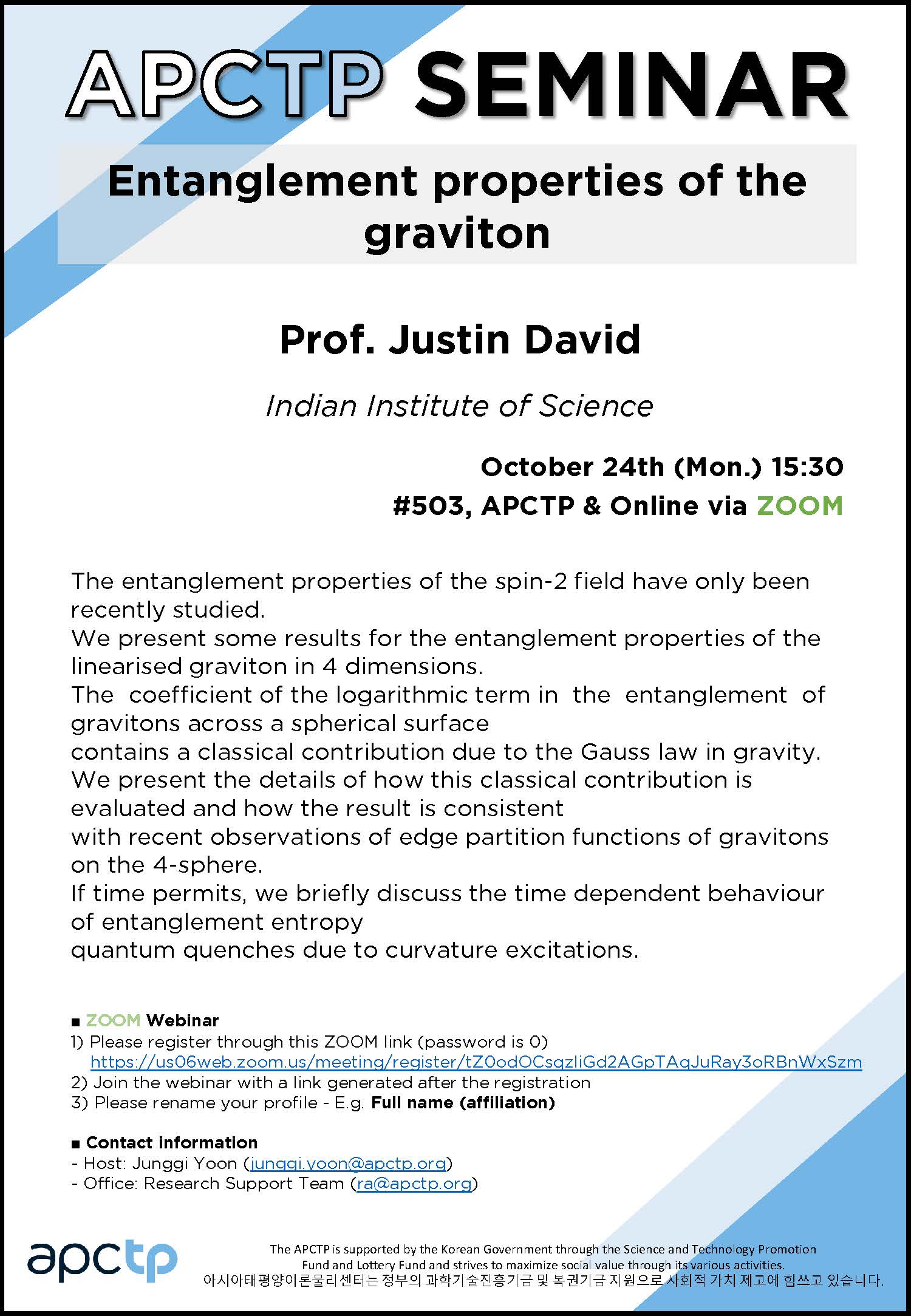 | Place | #503, APCTP & Online via ZOOM | ||||||