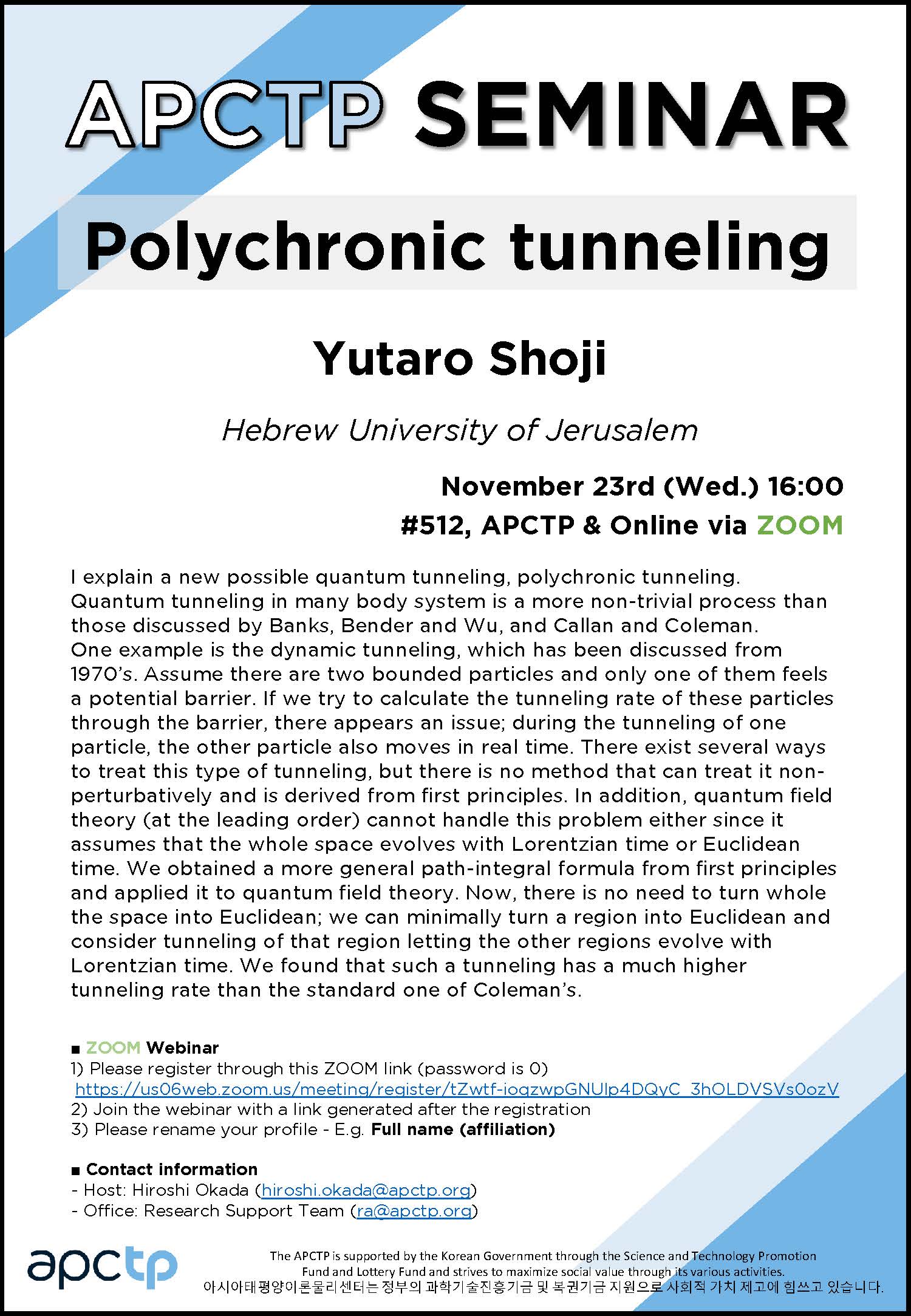 | Place | #512, APCTP & Onlize via zoom | ||||||