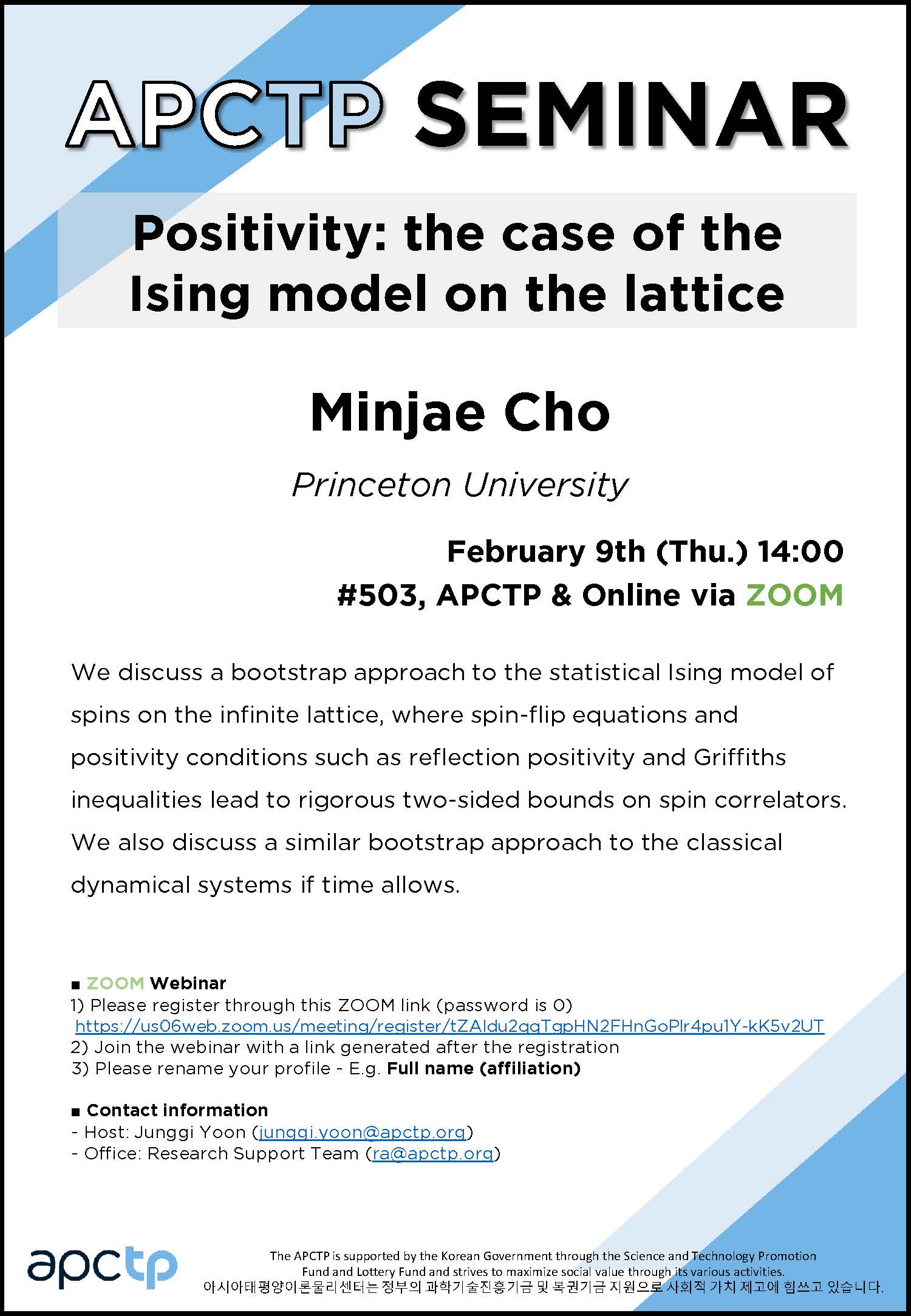 | Place | #512, APCTP & Online via Zoom | ||||||