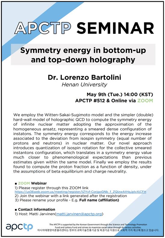 | Place | #512, APCTP & Online via Zoom | ||||||