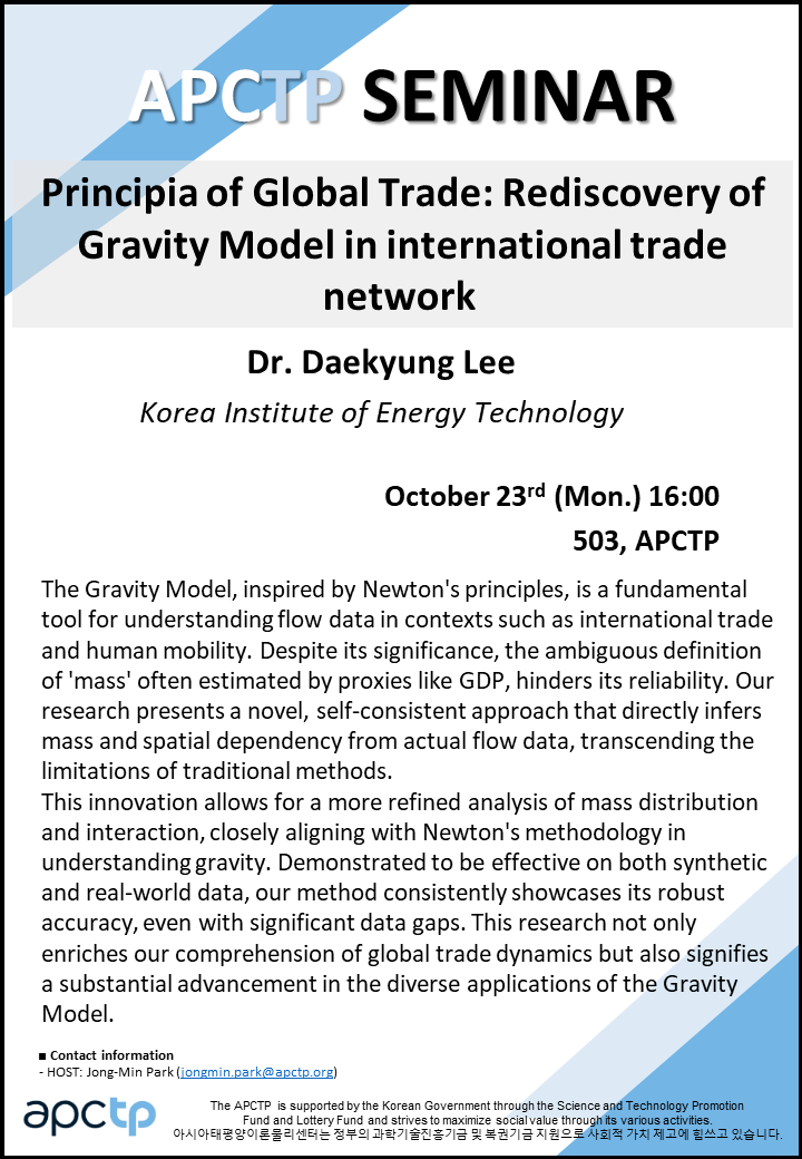 | Title | Principia of Global Trade: Rediscovery of Gravity Model in international trade network | ||||||