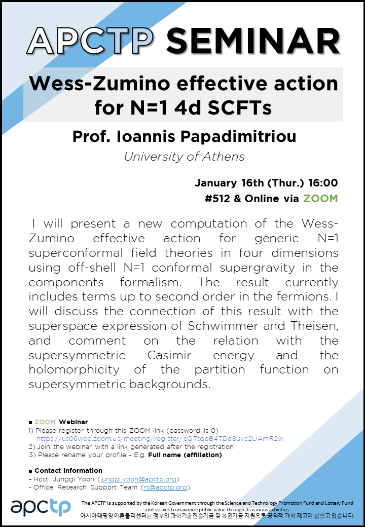 | Place | #512, APCTP & Online via Zoom | ||||||