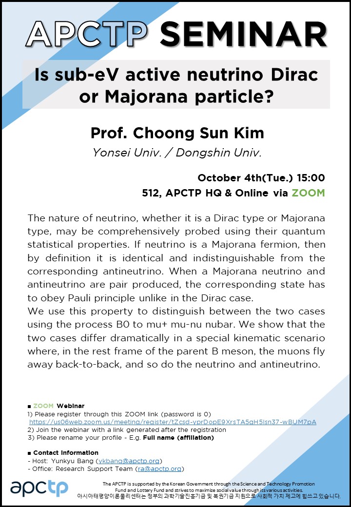 | Place | # 512, APCTP HQ & Online via Zoom | ||||||