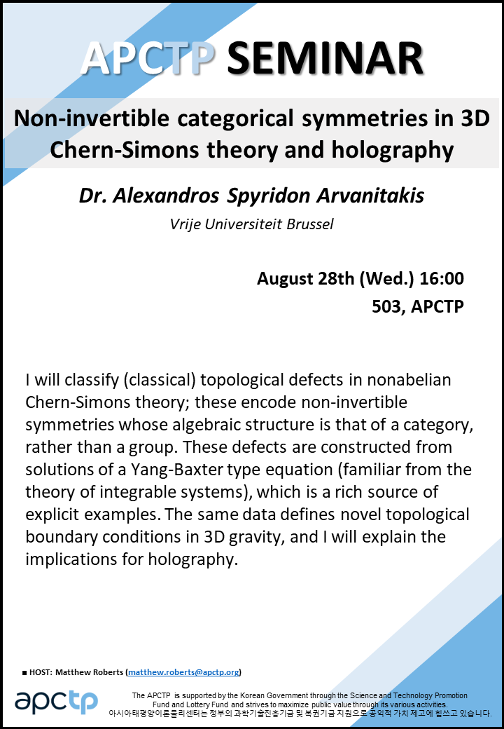 | Title | Non-invertible categorical symmetries in 3D Chern-Simons theory and holography | ||||||