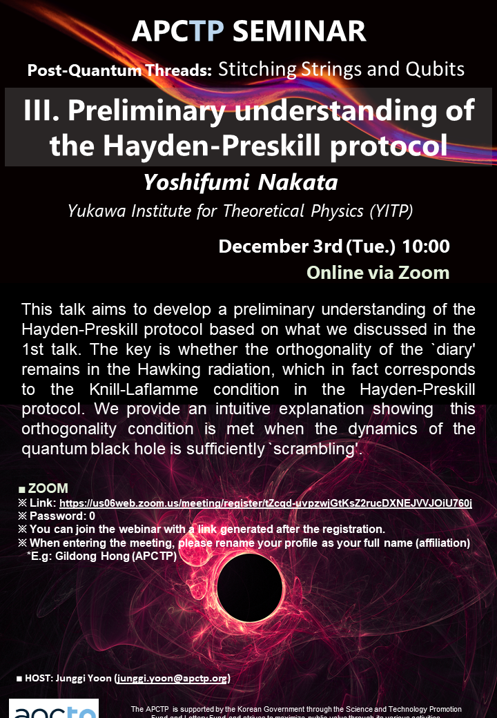 | Title | III. Preliminary understanding of the Hayden-Preskill protocol | ||||||