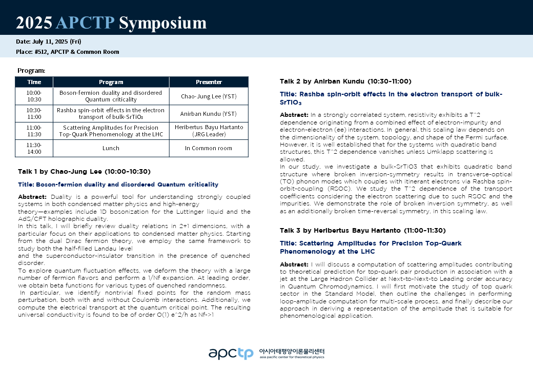 | Title | 7.11/2025 APCTP Symposium | ||||||||||||